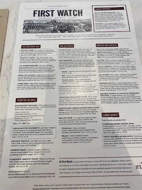 First Watch Cafe Menu. First watch is the brunch and breakfast restaurant chain that's. The first watch villanova menu has categories like classic favorites, healthier side, omelets and frittatas, salads and sandwiches, power.